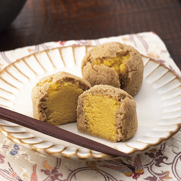 上品な甘さと、ほろほろとしたはかない口溶けの当店代表銘菓「おとし文」。黄身餡をこし餡で包み蒸し上げました。濃厚な黄身餡が美味しいしぐれ菓子です。