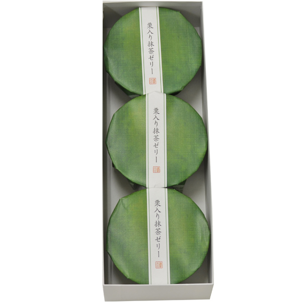 抹茶の風味が豊かに広がる口溶けの良いゼリーと、栗の入ったぜんざいの2層に仕上げました。